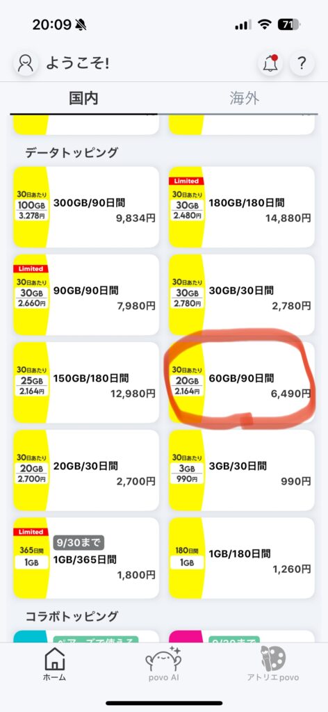 povoでは通話のプランとデータ通信のプランが分かれている(セットになっている)ので、自分のライフスタイルに合わせて選ぶことができます。